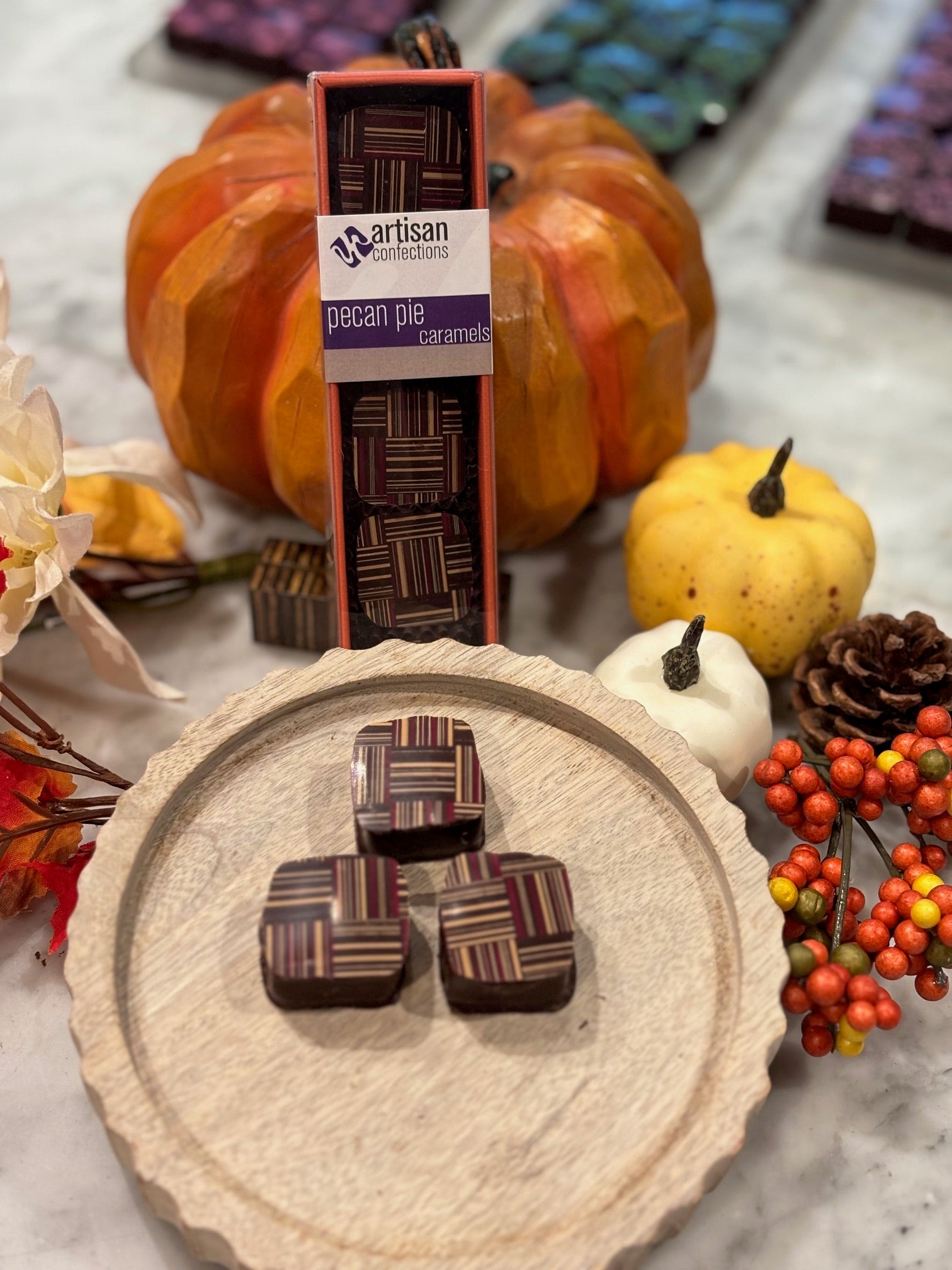 Enjoy 5 pieces of our pecan pie truffles, with our signature buttery caramel with chocolate and roasted pecan, with a graham cracker crust.